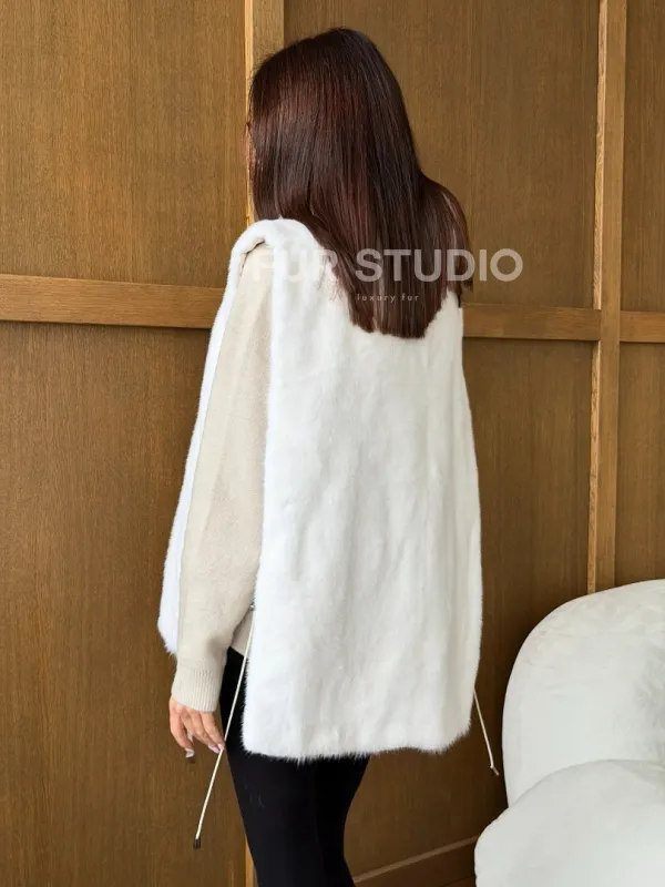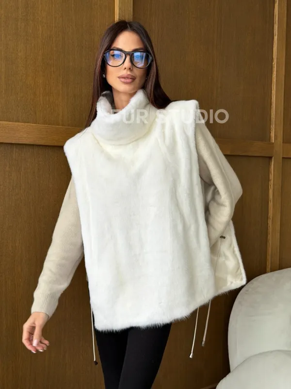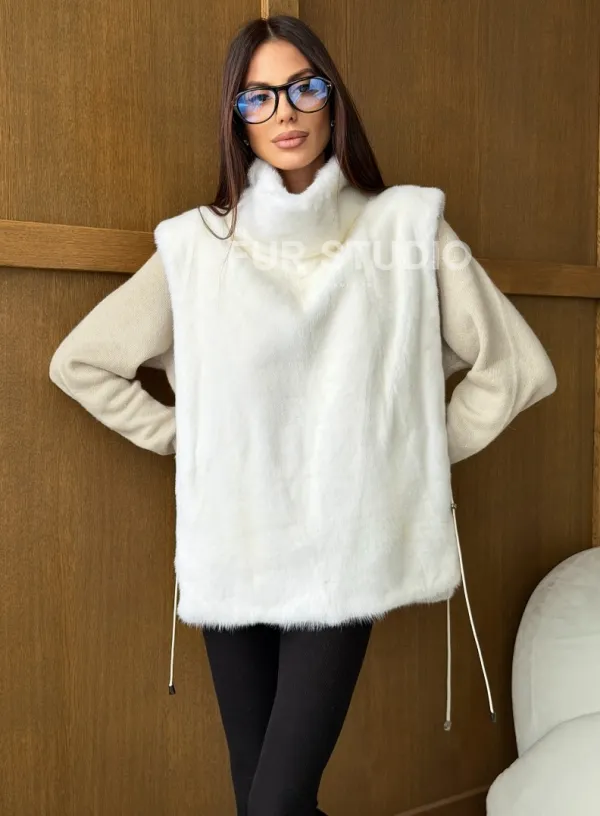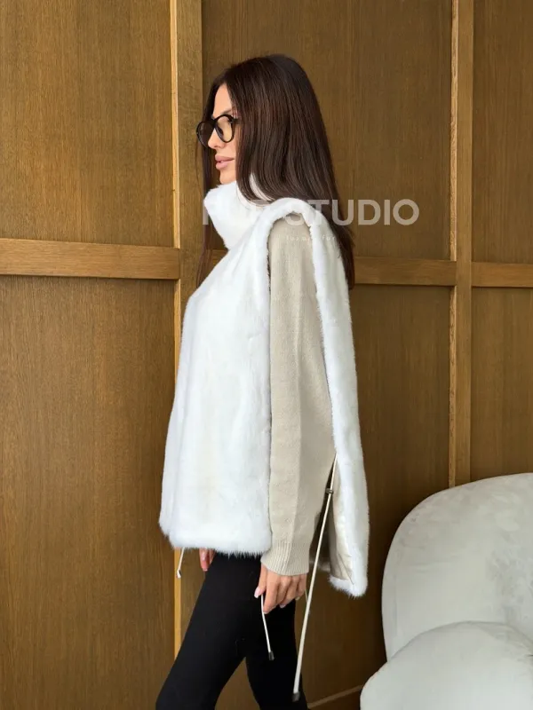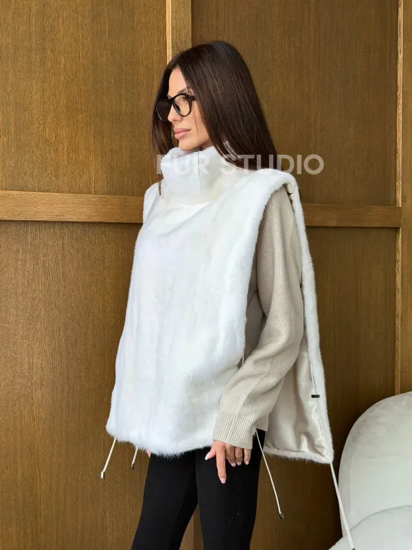 Белая норковая манишка 102741