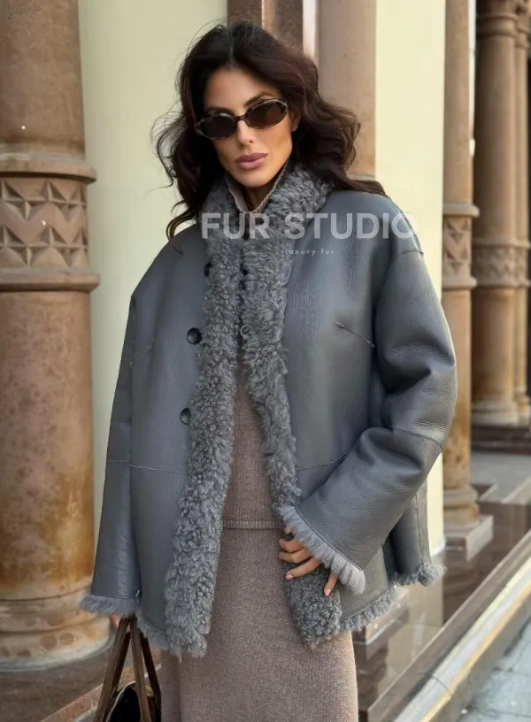 Дубленка серого цвета - двухсторонняя доступна для покупки в нашем шоуруме Furs Studio в , а также предлагается удобная доставка во все города России. Обогатите свой гардероб этой дубленкой, которая прослужит вам многие годы, добавив немного роскоши в ваш повседневный образ.