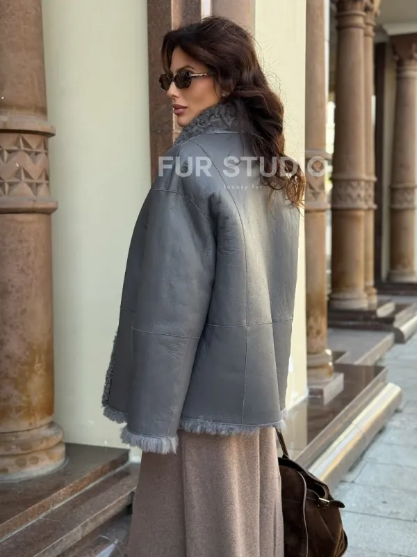 Дубленка серого цвета - двухсторонняя 102277