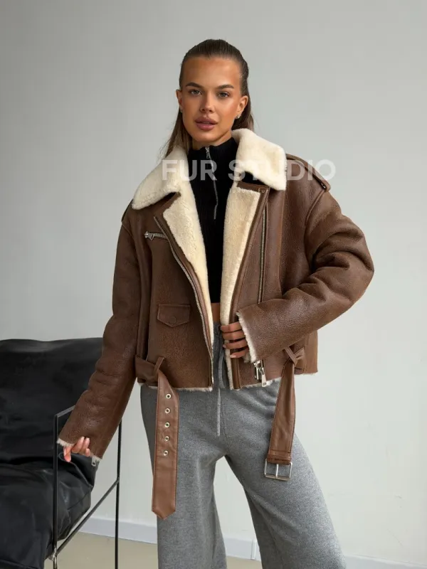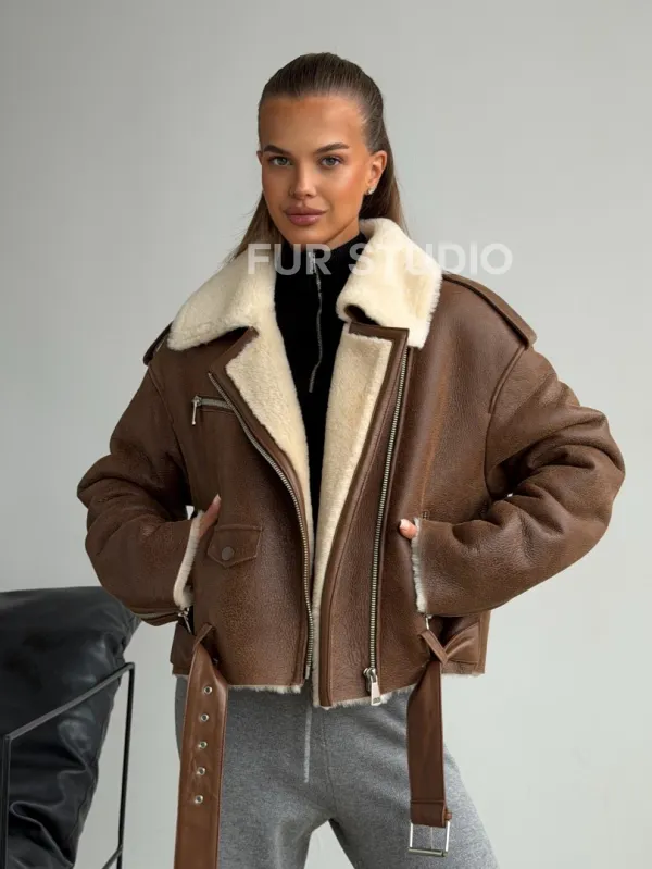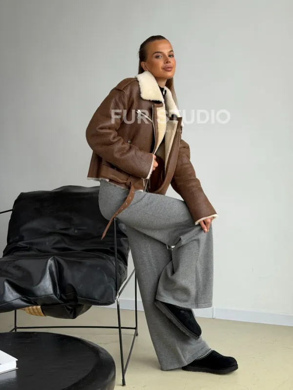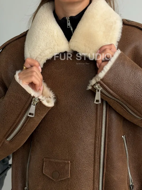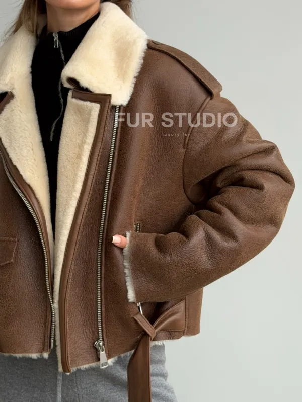 Короткая косуха-дубленка из овчины 102602