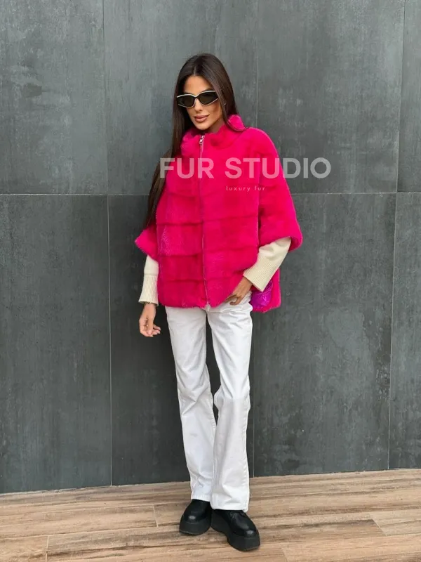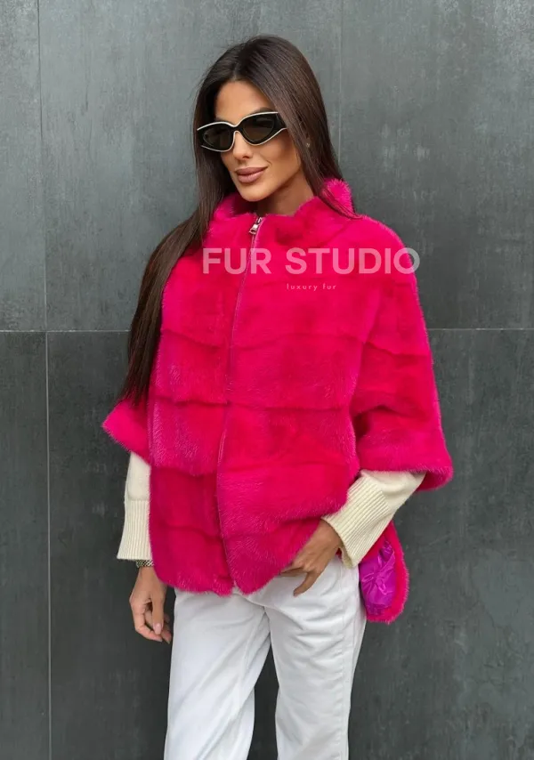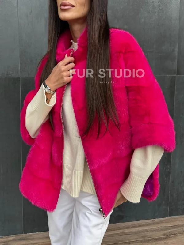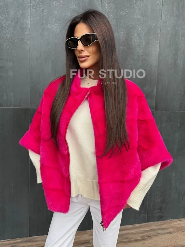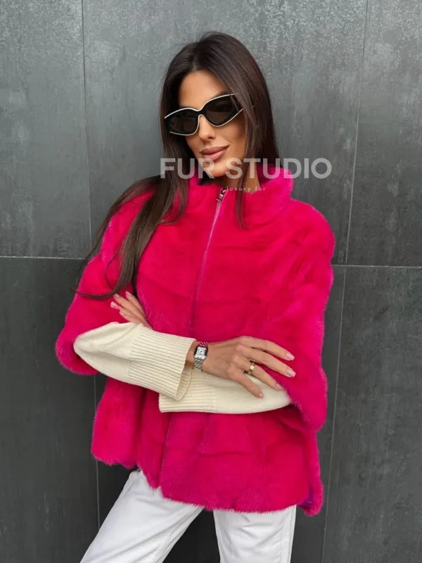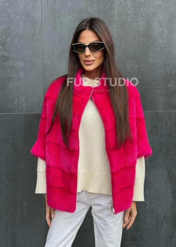 Норковая кофта на молнии - фуксия 102405