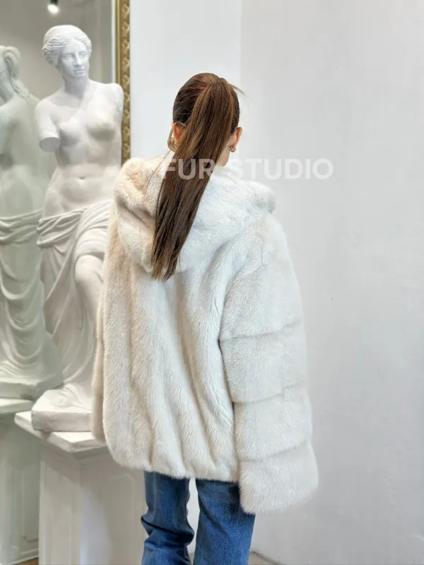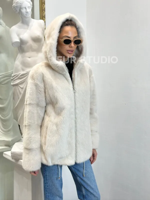 Норковая куртка с капюшоном - цвет ваниль 100797