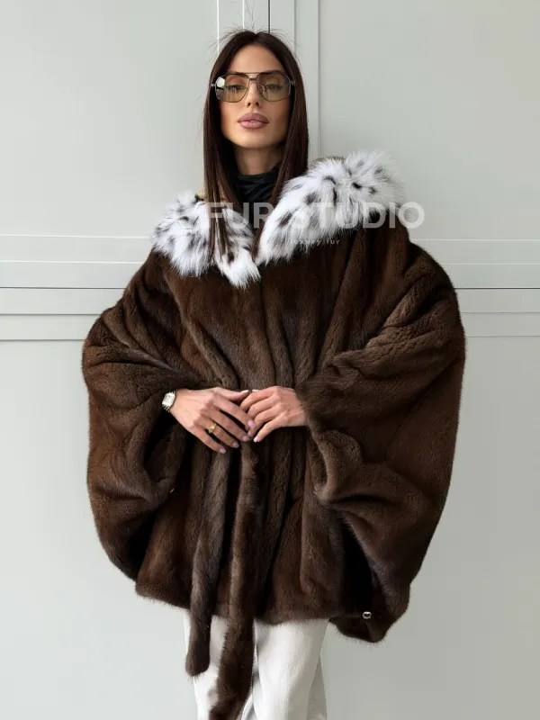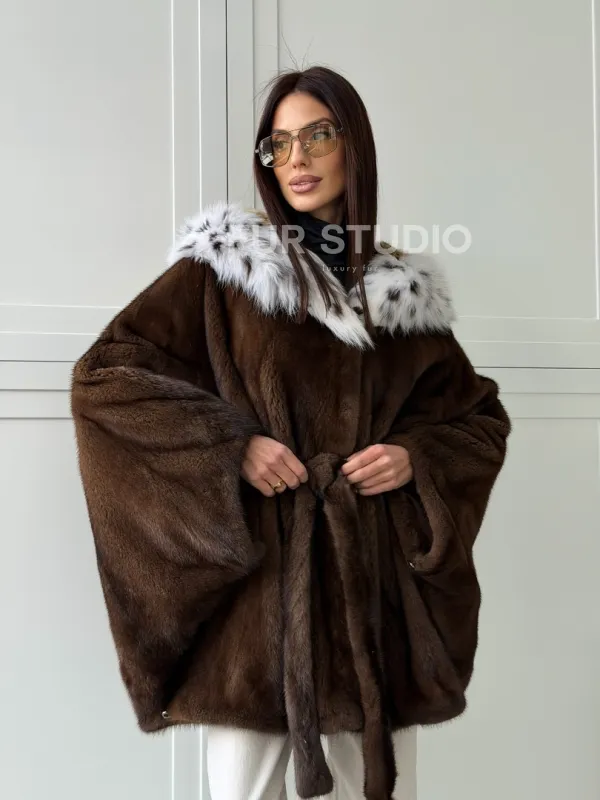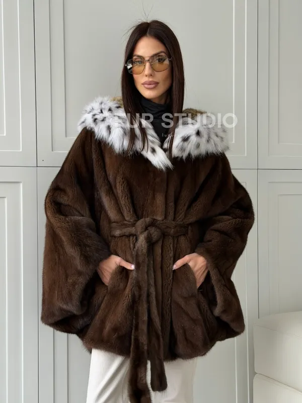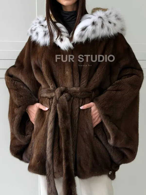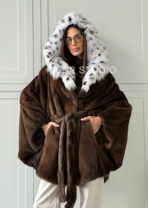 Норковая шуба с капюшоном по рысь 102819