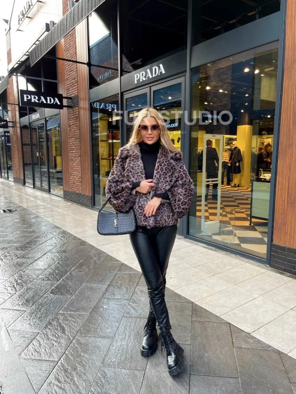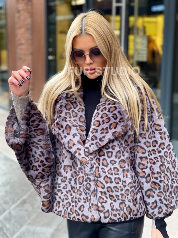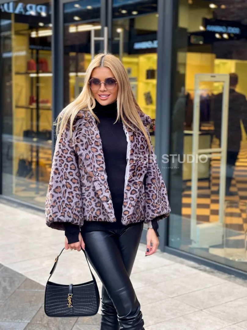 Полушубок из экомеха леопард 100181