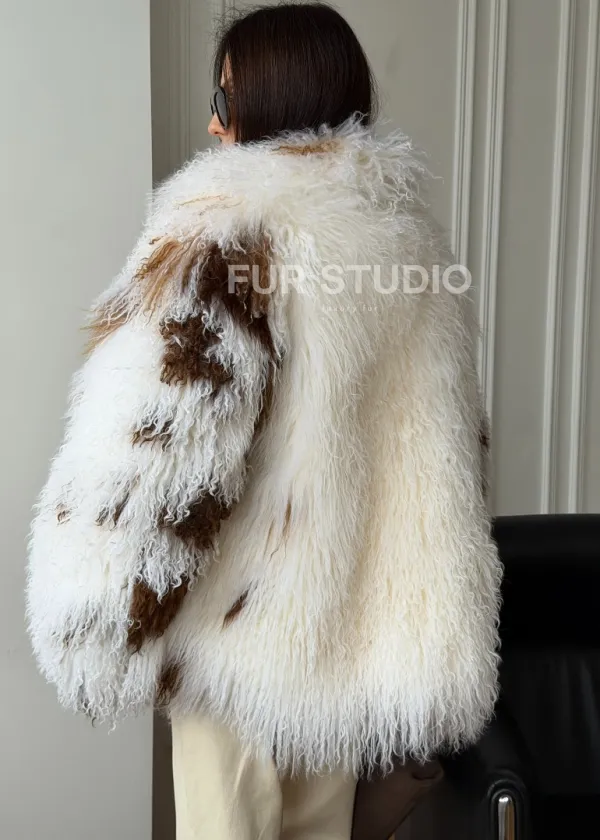 Шуба из ламы бело-коричневая 102550