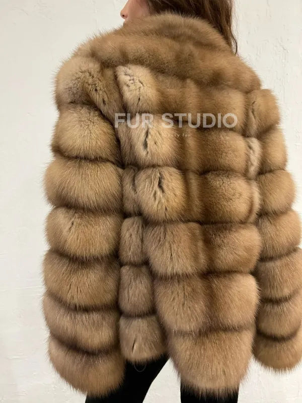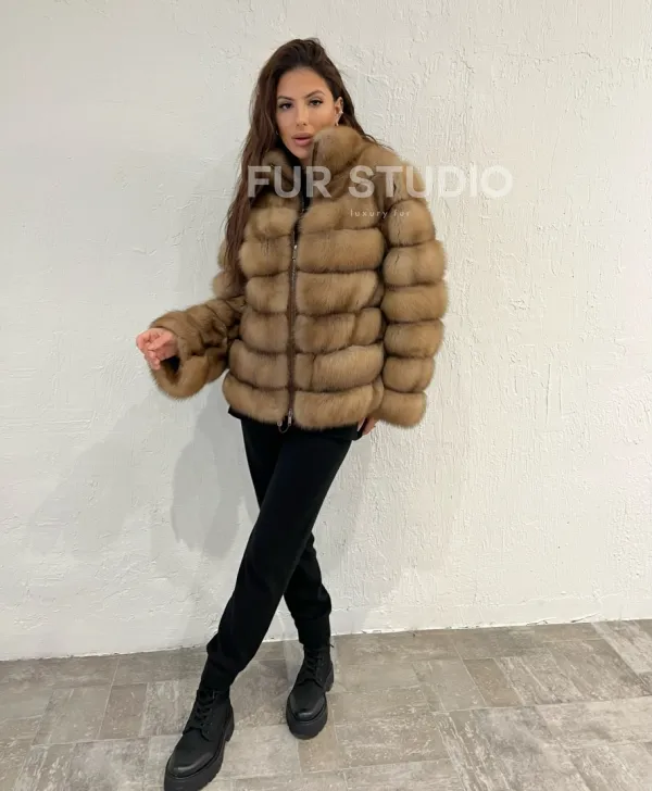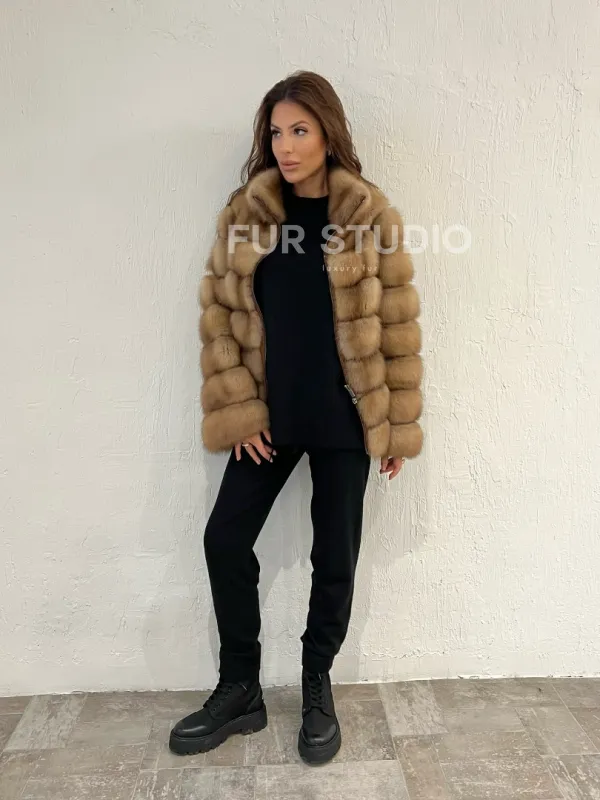 Мех данной шубы лесная куница, цвет натуральный. Предлагается в размерах от 42 до 44. Длина модели 55-60 см, что выгодно подчеркивает фигуру девушек. Эта модель идеально подойдет для девушек и женщин, предпочитающих роскошные натуральные меха.