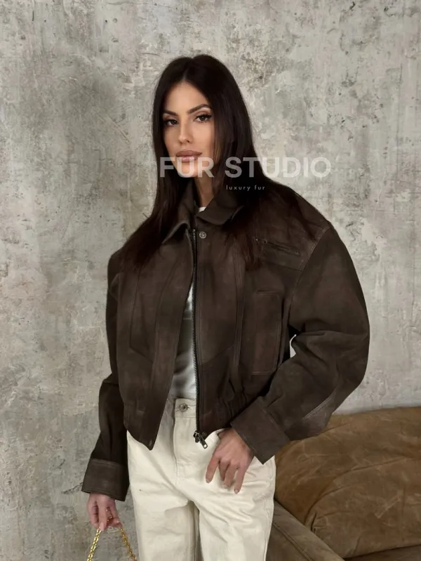Восхититесь элегантностью и несравненным комфортом с нашей эксклюзивной коллекцией кожаных изделий. Изготовленная из первоклассной натуральной кожи, Современный кроп - бомбер из натуральной замши не только согреет вас в прохладные дни, но и подчеркнет ваш изысканный вкус. Уникальный дизайн и высокое качество делают наши представленные образцы идеальным выбором для утончённых образов.