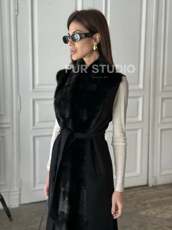 Стильное кашемировое пальто с мехом норки 100892