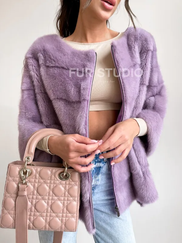 Верхняя одежда прекрасно сочетается со стилем casual и подчеркнет вашу утонченность. Рукав три четверти можно дополнить оригинальными высокими перчатками. Ваш образ в этом свитере будет приковывать восхищенные взгляды. Купить свитер из меха норки в лавандовом оттенке – выбор современных модниц, которые следят за трендом и идут в ногу со временем.