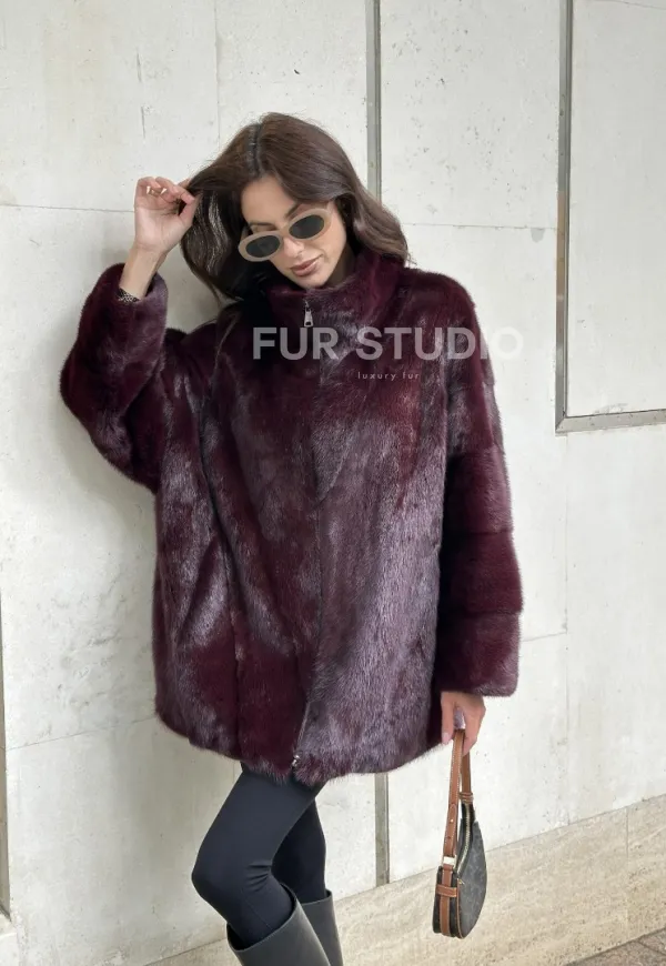 Женская норковая курточка - цвет бордо 100924