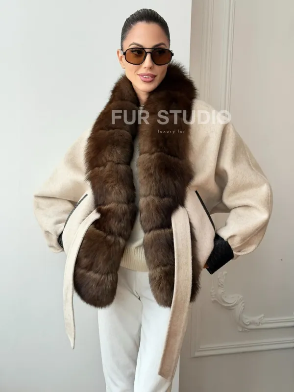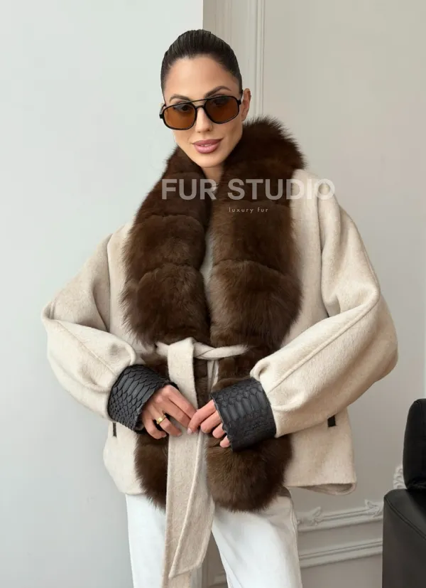 Женское шерстяное полупальто с мехом 102710